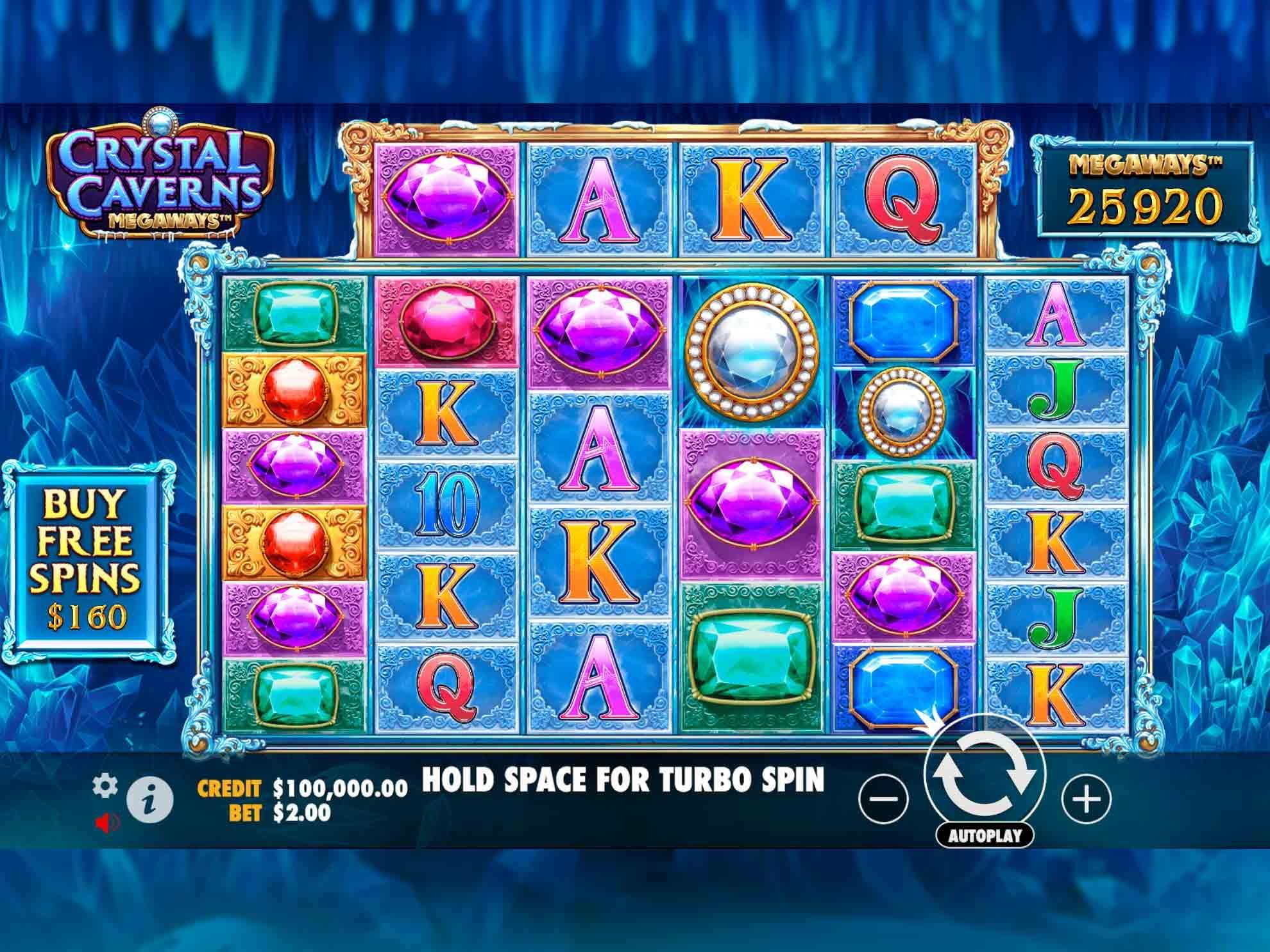 Los símbolos en Crystal Caverns Megaways™ incluyen gemas de diferentes colores y valores, así como símbolos de cartas tradicionales. El símbolo Wild puede aparecer en los carretes para sustituir a otros símbolos, aumentando las probabilidades de formar combinaciones ganadoras.